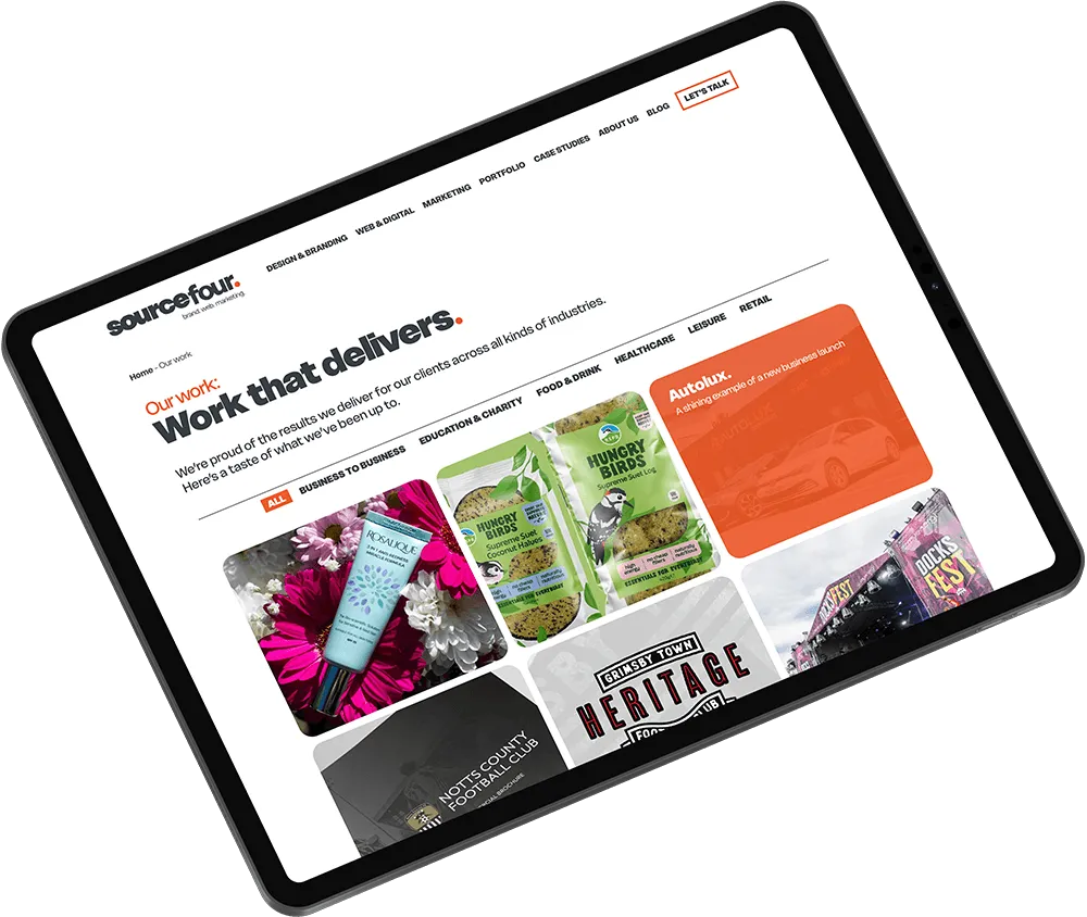 We wanted this rebrand to really reflect the energy at Sourcefour – we have big things to say, and ideas in spades! Using the logo at a slight angle, sometimes cropping off the page edge gives the appearance that it’s bursting to get out.